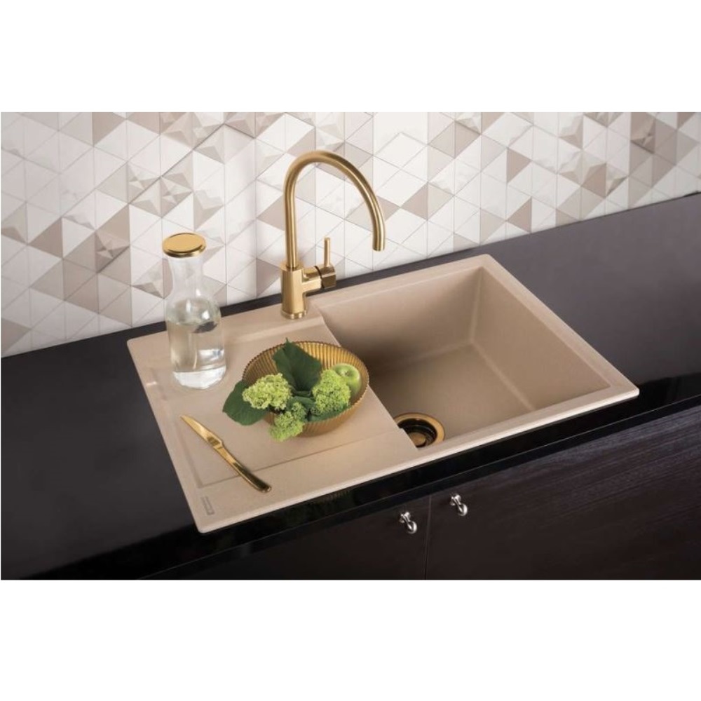 Мойка кухонная Omoikiri из коллекции Daisen 78-SA имеет размеры 780х510 мм., изготовлена из искусственного гранита. Форма — прямоугольная, одна чаша без отверстия для смесителя. Сифон в комплекте. Ширина чаши 38. Врезной монтаж. Имеется крыло.
