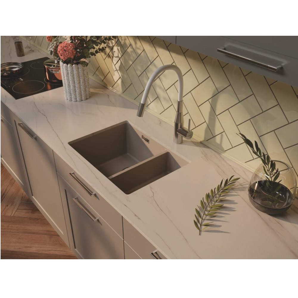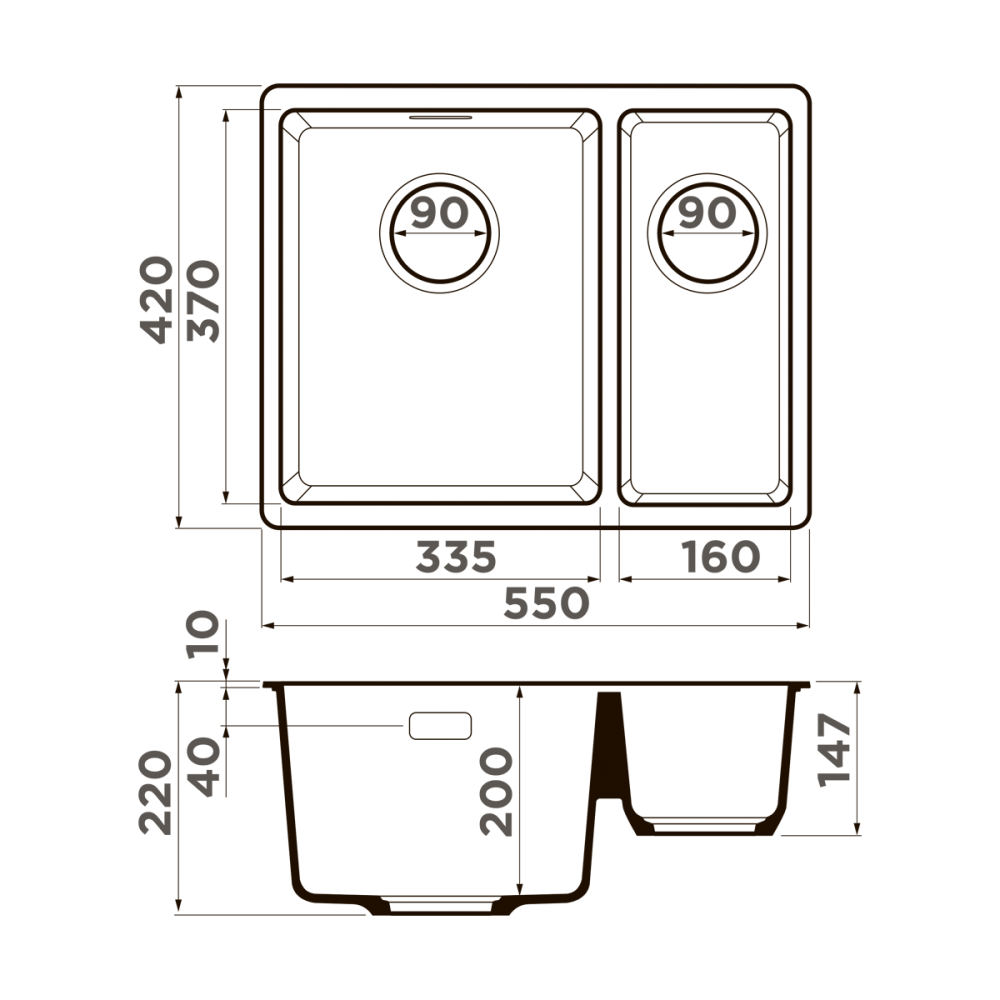Мойка кухонная Omoikiri из коллекции Kata 55-2-U-ES имеет размеры 550х420 мм., изготовлена из искусственного гранита. Форма — прямоугольная, одна чаша без отверстия для смесителя. Сифон в комплекте. Ширина чаши 33,5. Подстольный монтаж.