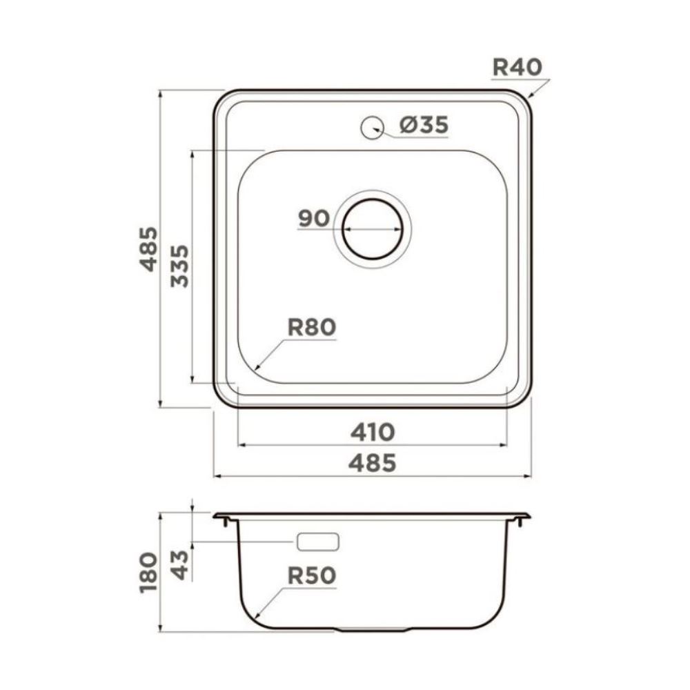 Мойка кухонная Omoikiri из коллекции Notoro 48-SI имеет размеры 485х485 мм., изготовлена из нержавеющей стали. Форма — прямоугольная, одна чаша без отверстия для смесителя. Сифон в комплекте. Ширина чаши 41. Врезной монтаж.