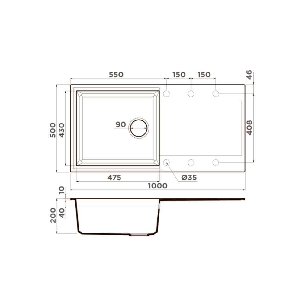 Мойка кухонная Omoikiri из коллекции Sakaime 100-WH имеет размеры 1000х500 мм., изготовлена из искусственного гранита. Форма — прямоугольная, одна чаша без отверстия для смесителя. Сифон в комплекте. Ширина чаши 47,5. Врезной монтаж. Имеется крыло.