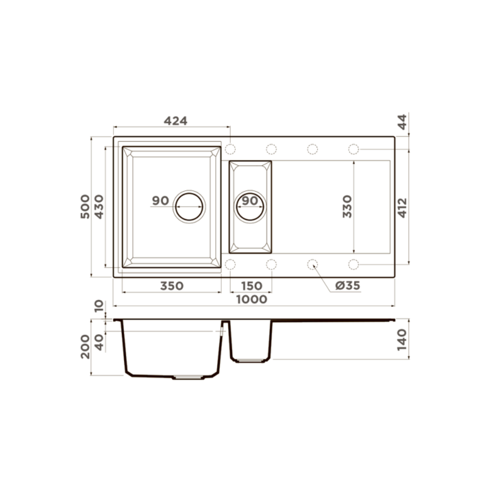 Мойка кухонная Omoikiri из коллекции Sakaime 100-2-GR имеет размеры 1000х500 мм., изготовлена из искусственного гранита. Форма — прямоугольная, одна чаша без отверстия для смесителя. Сифон в комплекте. Ширина чаши 35. Врезной монтаж. Имеется дополнительная чаша и крыло.