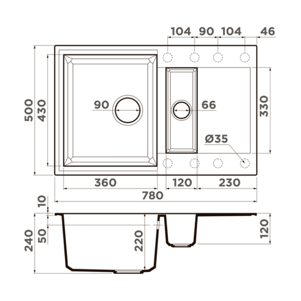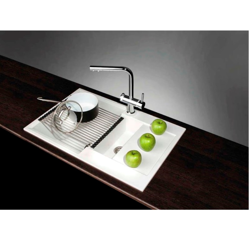 Мойка кухонная Omoikiri из коллекции Sakaime 78-2-BL имеет размеры 780х500 мм., изготовлена из искусственного гранита. Форма — прямоугольная, одна чаша без отверстия для смесителя. Сифон в комплекте. Ширина чаши 36. Врезной монтаж. Имеется дополнительная чаша и крыло.