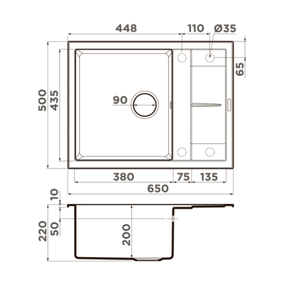 Мойка кухонная Omoikiri из коллекции Sumi 65-PL имеет размеры 650х500 мм., изготовлена из искусственного гранита. Форма — прямоугольная, одна чаша без отверстия для смесителя. Сифон в комплекте. Ширина чаши 38. Врезной монтаж. Имеется крыло.
