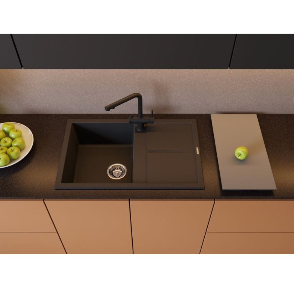 Мойка кухонная Omoikiri из коллекции Sumi 79A-WG имеет размеры 790х500 мм., изготовлена из искусственной керамики. Форма — прямоугольная, одна чаша без отверстия для смесителя. Сифон в комплекте. Ширина чаши 38. Врезной монтаж. Имеется крыло.