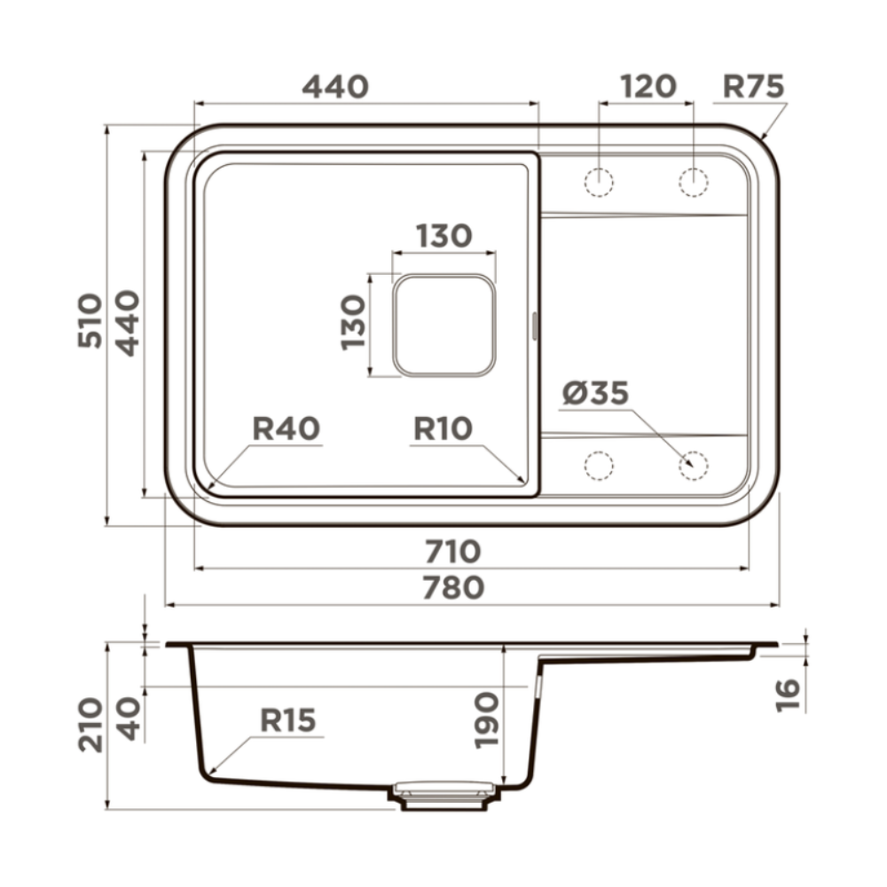 Мойка кухонная Omoikiri из коллекции Tasogare 78-GR имеет размеры 780х510 мм., изготовлена из искусственного гранита. Форма — прямоугольная, одна чаша без отверстия для смесителя. Сифон в комплекте. Ширина чаши 44. Врезной монтаж. Имеется крыло.