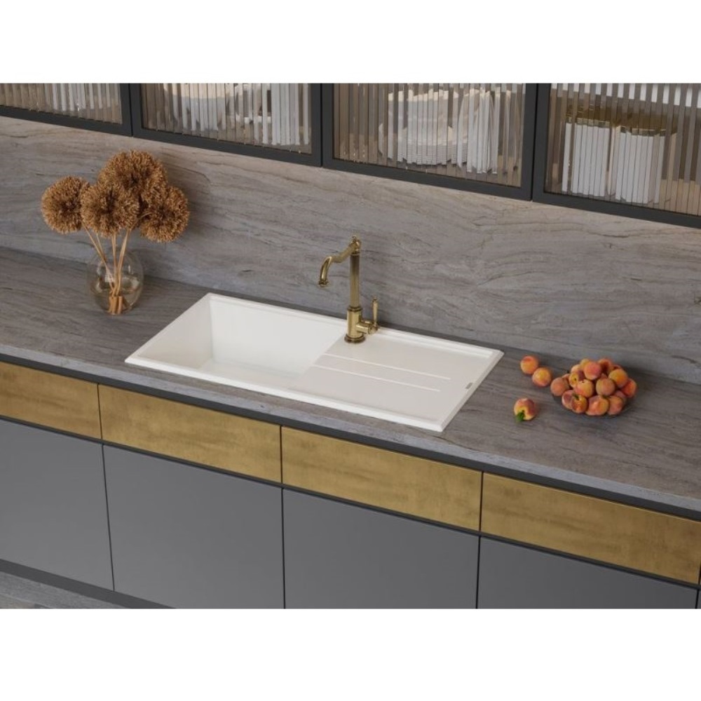 Мойка кухонная Omoikiri из коллекции Tedori 100-BL имеет размеры 1000х510 мм., изготовлена из искусственного гранита. Форма — прямоугольная, одна чаша без отверстия для смесителя. Сифон в комплекте. Ширина чаши 47,8. Врезной монтаж. Имеется крыло.