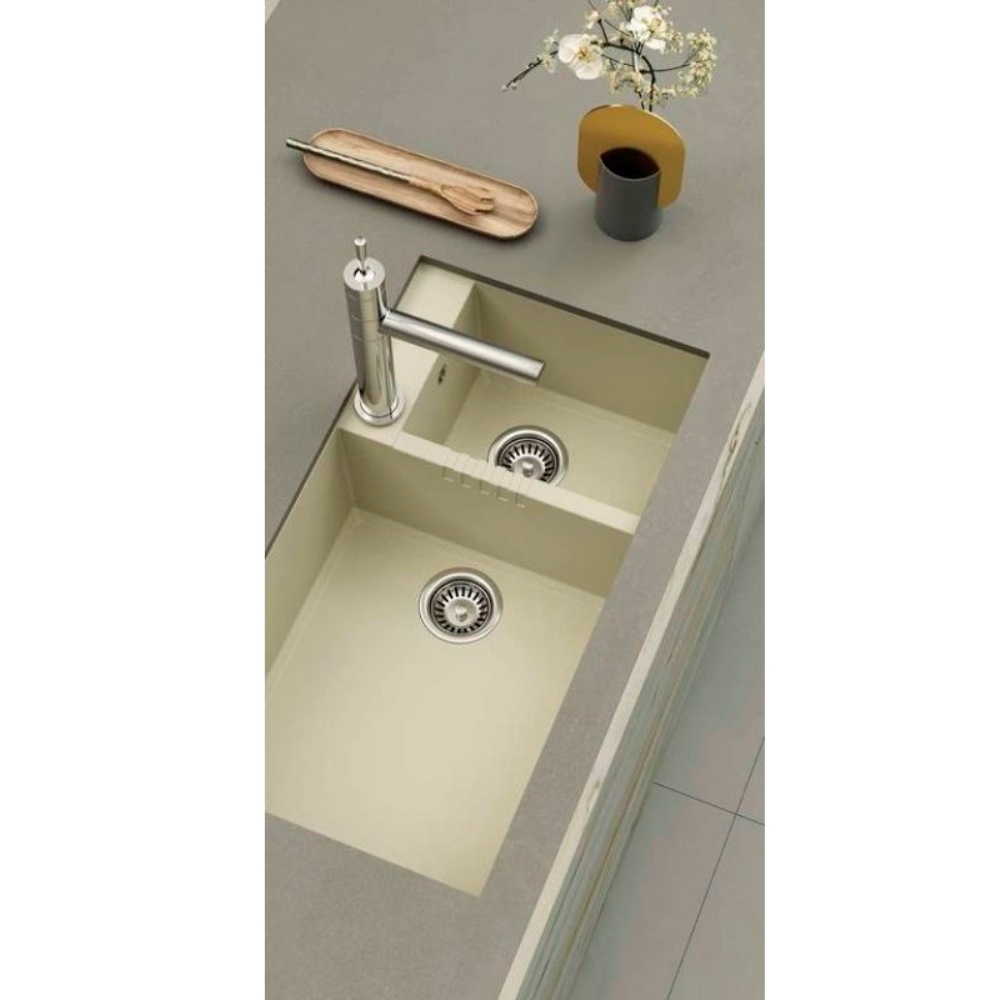 Мойка кухонная Omoikiri из коллекции Tedori 85-2-U-WH имеет размеры 850х465 мм., изготовлена из искусственного гранита. Форма — прямоугольная, одна чаша без отверстия для смесителя. Сифон в комплекте. Ширина чаши 52,5. Подстольный монтаж. Имеется дополнительная чаша.