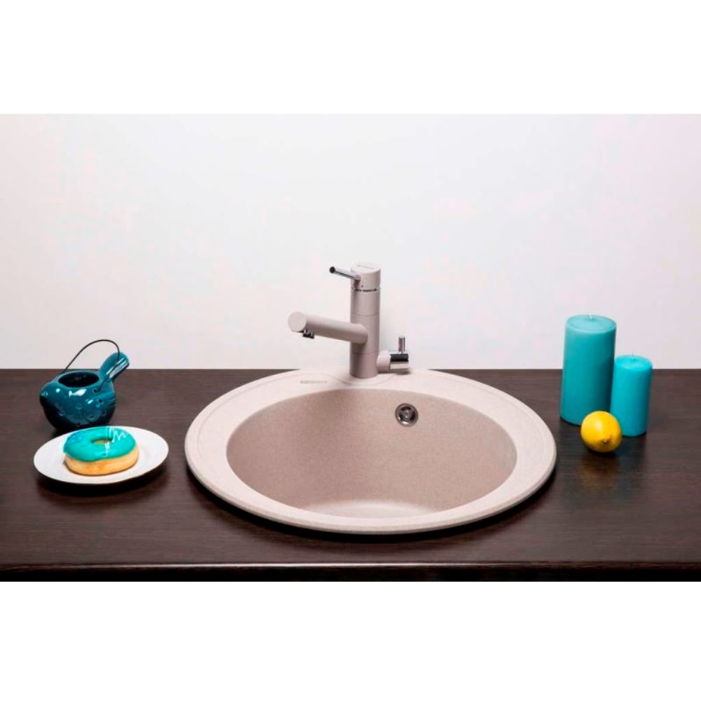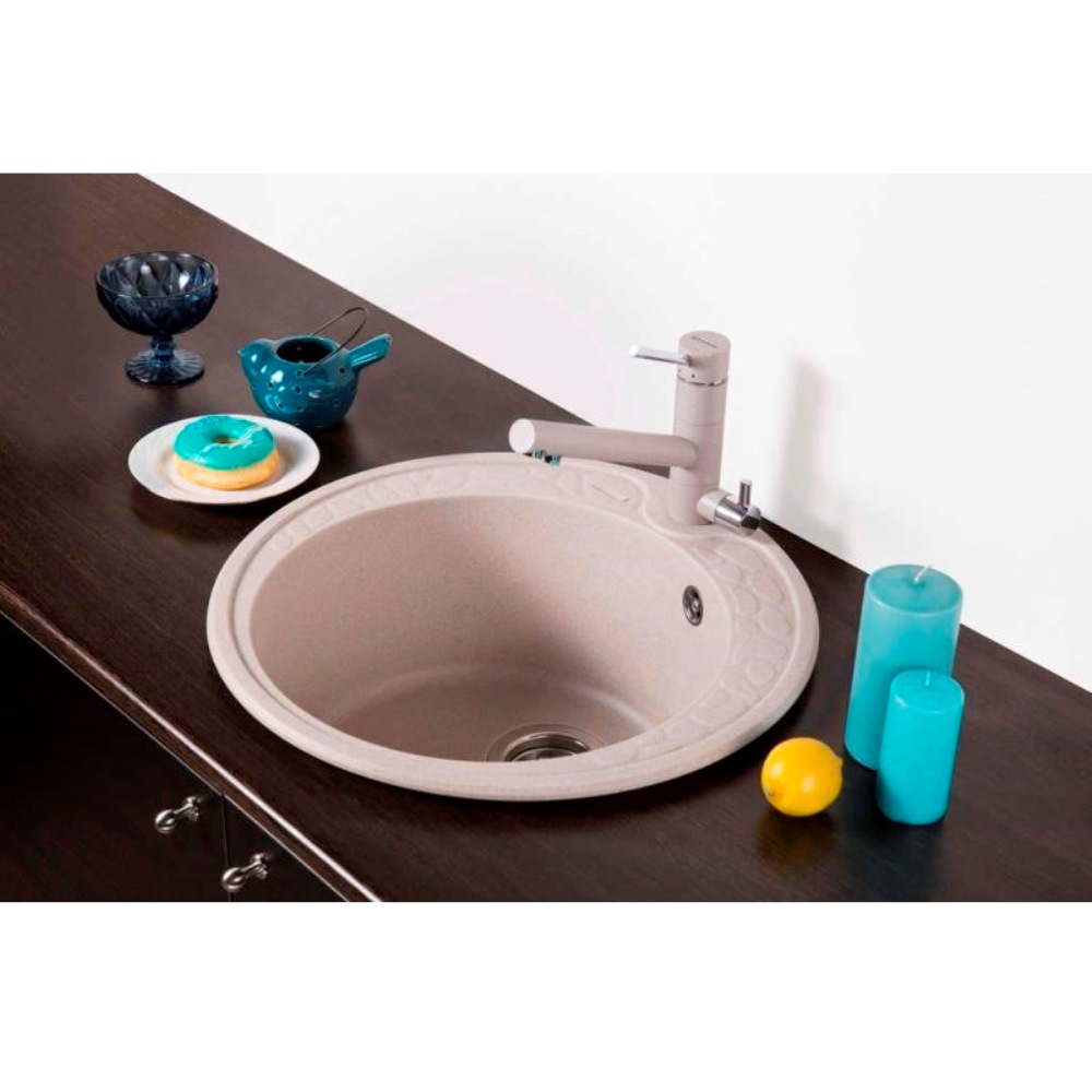 Мойка кухонная Omoikiri из коллекции Tovada 51-GR имеет размеры 510х510 мм., изготовлена из искусственного гранита. Форма — круглая, одна чаша с отверстием для смесителя. Сифон в комплекте. Ширина чаши 39,5. Врезной монтаж.