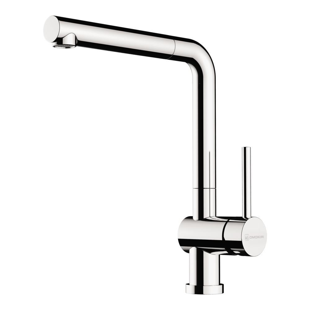 Смеситель для кухни Omoikiri Akashi оснащен рычажным управлением для регулировки температуры и напора воды. Горизонтальный монтаж на 1 отверстие. Вытяжной излив 202 мм.