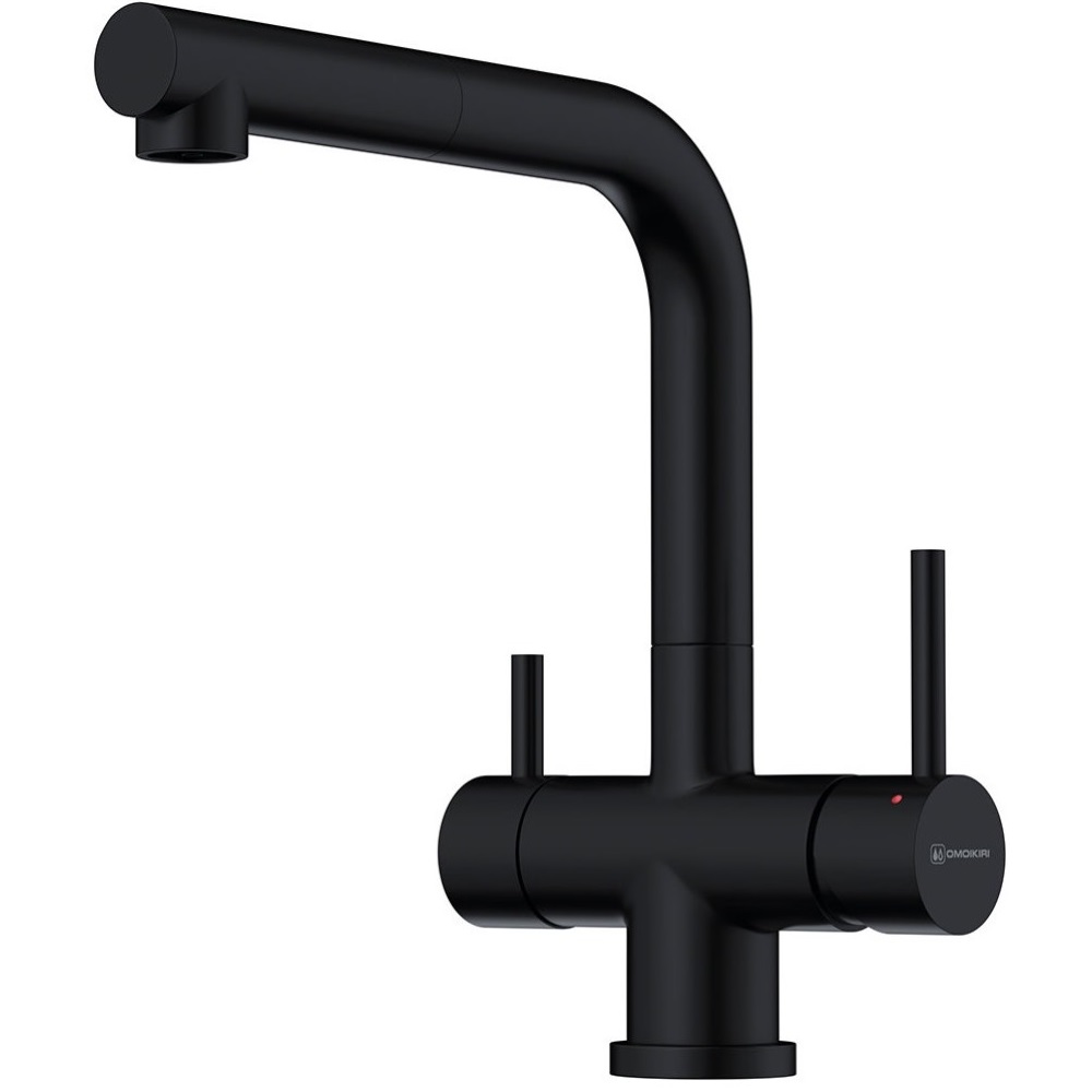 Смеситель для кухни Omoikiri Takamatsu-S с подключением фильтра и выдвижной излив оснащен рычажным управлением для регулировки температуры и напора воды. Горизонтальный монтаж на 1 отверстие. Поворотный излив 198 мм.