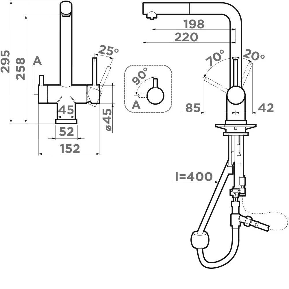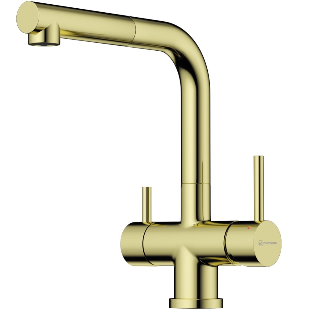 Смеситель для кухни Omoikiri Takamatsu-S с подключением фильтра и выдвижной излив оснащен рычажным управлением для регулировки температуры и напора воды. Горизонтальный монтаж на 1 отверстие. Поворотный излив 198 мм.
